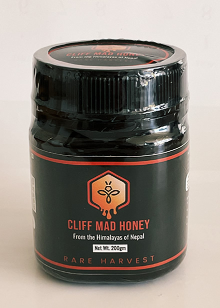 主な原料はネパールの高地に咲く「ロドデンドロン(シャクナゲ)」という花の蜜で、ヒマラヤオオミツバチがその蜜を一生懸命集めて完成するそうです。